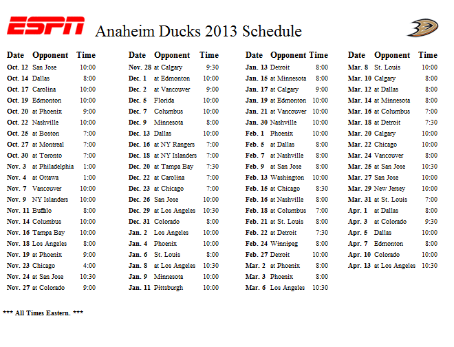 The Ducks get to open the season at home, and once again, celebrate New Year’s Eve at home. Fortunately the schedule does not conflict with the Chargers schedule. I was worried that the Chargers/ Oakland game on December 30 may interfere, but the Ducks play on December 31st.